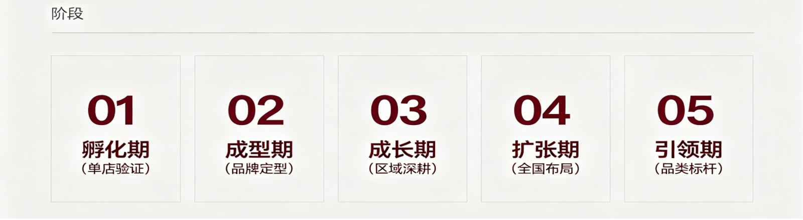 | 門店規模 | 1-3家直營店 | 3-10家(直營+內部加盟) | 10-30家(區域密集) | 30-100家(跨3-5城) | 100-1000+家(全國/海外) |