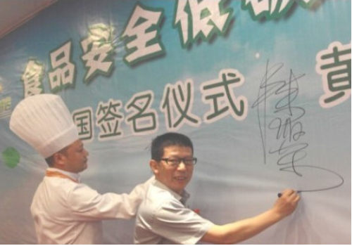 7月10號晚,“當代四大名廚”陳緒榮在湖北黃石陽新舉行了盛大的收徒儀式!收徒儀式由大冶市烹飪餐飲業協會常務副會長兼秘書長羅文主持,黃石市烹飪餐飲業協會和大冶市烹飪餐飲業協會的眾多嘉賓到場祝賀,北京、江西和武漢等地的弟子專程前來賀喜。首先,我號召同行承諾推廣綠色食材和綠色烹飪的“生態宴”,并在“食品安全低碳環保‘生態宴’”簽名墻上簽字,大家踴躍寫上自己的名字;隨后,收徒儀式以傳統的拜師形式舉行,按跪拜、敬茶、頒發證書和合影等程序進行;最后,嘉賓和弟子登臺發表致辭。