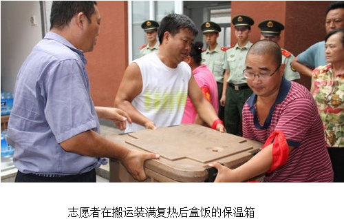 7月28日,兩輛車身懸掛著“湘鄂情和北京人民心連心”橫幅的冷餐車,載著2100盒復(fù)熱后的冷鏈盒飯和礦泉水,從青龍湖鎮(zhèn)駛出,一輛開往房山區(qū)青龍湖鎮(zhèn)北車營村災(zāi)民臨時安置點,另一輛開往青龍湖鎮(zhèn)果各莊村和大馬村,把可口的熱飯熱菜送到“7.21”特大暴雨受災(zāi)災(zāi)民面前。這三個村子的上千災(zāi)民終于結(jié)束了“一天兩頓方便面”的生活,災(zāi)后第一次吃上了由北京湘鄂情股份有限公司提供的可口的免費熱飯熱菜。