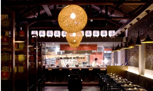 餐廳的設(shè)計(jì)以木材及花崗石的天然顏色為主,充滿現(xiàn)代氣息的燈光及堆放著的清酒桶,增添了不少日式時(shí)尚氛圍。食客可以圍坐在炭火燒烤架旁,一邊享用美食,一邊欣賞大廚在開放式廚房精妙絕倫的烹飪技藝,以及餐廳充滿活力的前衛(wèi)設(shè)計(jì)。