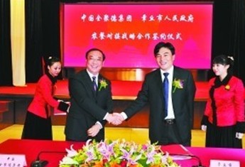 全聚德集團總經理邢穎左二與章丘市委副書記、市長劉天東簽署戰略合作協議