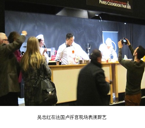 作為組委會應(yīng)邀唯一代表中國參加此次盛會的中國寧夏廚師吳志紅,向世界各地的來賓表演了中國清真美食,他克服了使用西餐用具及電磁爐不習慣的困難,在法國藍帶廚藝學院的學員配合下圓滿完成了這次表演,制作的翡翠魚花受到觀眾的熱烈歡迎,他以高超的技藝征服了世界各地的美食愛好者,受到了評委會主席愛德華?君度先生的高度評價。據(jù)悉,代表中國的美食圖書《舌尖上的中國》也獲得了這次大獎賽的獎項。