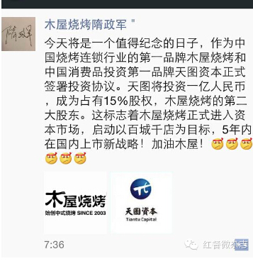 24日,紅餐微雜志獨(dú)家深度報道木屋燒烤獲1億風(fēng)投事件,看看揚(yáng)言一年內(nèi)超越海底撈的木屋燒烤創(chuàng)始人隋政軍到底想干啥?