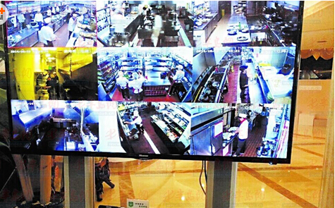 15日上午,記者在黃島區食品藥品監督管理局看到,他們專門設立了電子監控室。“我們和酒店進行了聯網,酒店的后廚在我們單位里就能看到。”黃島區食品藥品監督管理局相關負責人說。
