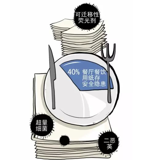 數據顯示,85%的消費者每周至少在外就餐一次,87.6%的消費者會使用餐廳提供的免費餐巾紙。由此可見,紙品已成為餐飲企業消費環節重要消耗品。然而這些紙張的安全性到底如何?