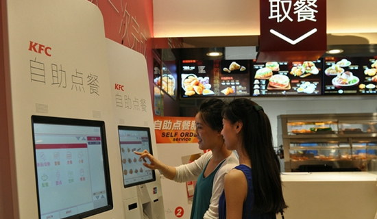 半個月前,肯德基繼在全國2200多家餐廳提供WIFI服務(wù),推出自助點餐硬件外,再度與支付寶達成全面合作,在上海和浙江的700多家餐廳接入支付寶支付,并計劃在全國的餐廳逐步推廣這一服務(wù)。顧客在肯德基付款時,只要出示支付寶錢包付款碼,讓收銀員掃一下后,2秒即可完成付款。相比現(xiàn)金方式,顧客使用支付寶錢包支付時無需準(zhǔn)備現(xiàn)金,支付快捷,收銀員也無需找零,既方便了顧客也提高了收銀員的工作效率。