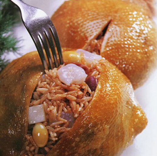 看樣子會以為這是一只炸雞,金黃的酥皮布滿均勻而細密的氣泡,然而咬破這層輕薄酥香半透明,絲毫不膩的雞皮之后,濃郁滾燙的雞汁就跟隨松軟入味的雞肉一起噴涌而出,完全酥爛并且包含各種香料氣味的雞肉,一碰就從骨頭上脫離,卻還有雞的滑嫩和鮮美原味。絕不像鹽?雞、白切雞或者北方扒雞,那口感更像是吃了一個燉雞天婦羅.這只費盡心機的雞叫葫蘆雞,始于唐代,有一個十分驚悚的故事。