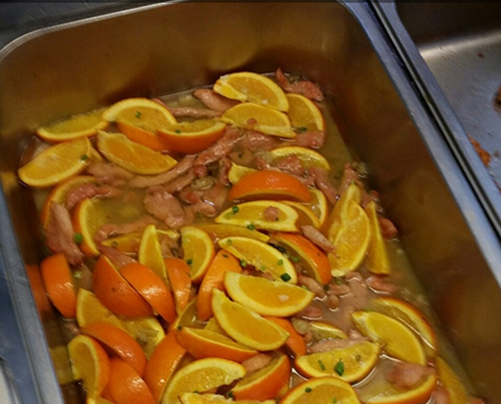 中午,武漢生物工程學院桃園餐廳推出了一道神級“黑暗料理”:橙子炒肉。這道菜的主料是橙子和雞脯肉。同學品嘗后表示,雞肉里有橙子的清香,比較爽口,紛紛點贊。