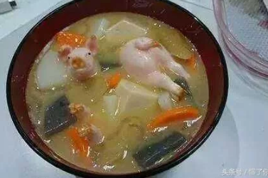 還有一道有些特殊的“什錦湯”,一碗湯里邊一個豬屁股一個豬頭就這樣望著你,盡管說是豬肉宴,可是感覺這頓飯吃的很不是味道,心里有點兒厭惡。