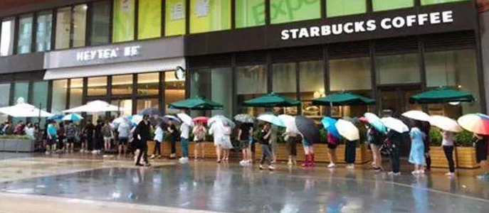 ▲ 購買喜茶的隊伍從星巴克門口經過