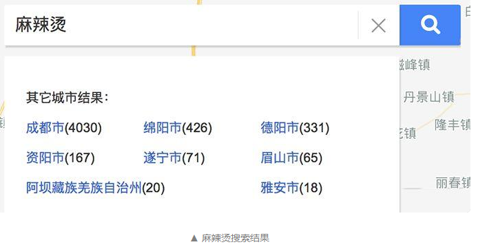 觀察附近的商圈,發(fā)現(xiàn)光是一個(gè)商區(qū)就有好幾家,出于好奇,讀sir在百度地圖上搜索麻辣燙三個(gè)字。
