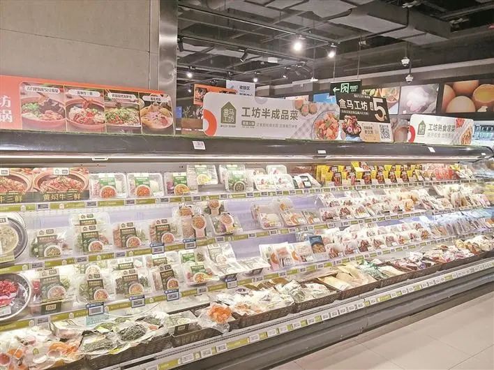 近日,實地走訪多家線下連鎖商超時看到,預制菜產(chǎn)品琳瑯滿目,不少市民前來選購。